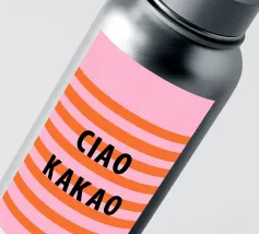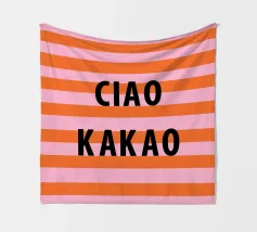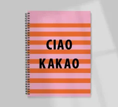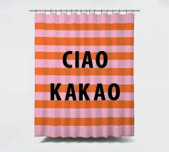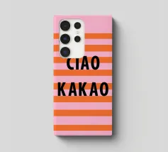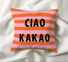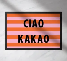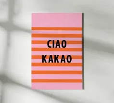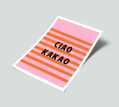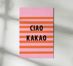 "Ciao Kakao" - una striscia d'addio alla moda in una tipografia elegante che combina il fascino italiano con un'allegra tavolozza di colori rosa e arancione. Ideale per un poster moderno e minimalista!