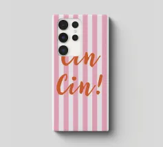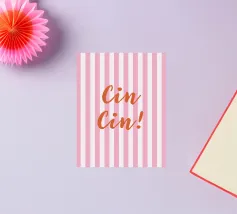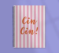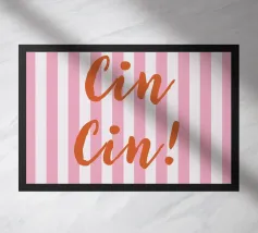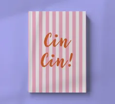 Elegante design a tema brindisi con la frase italiana "Cin Cin!". - un'elegante celebrazione dell'amicizia, del vino e dei bei momenti.