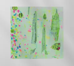 Tecnica mista realizzata con pittura acrilica, inchiostro ad alcool e manifesti di spettacoli circensi.