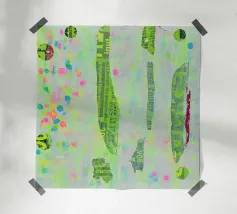 Tecnica mista con pittura acrilica, inchiostro ad alcool e manifesti di spettacoli circensi