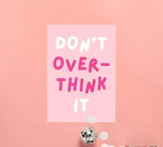 Stampa della citazione Don't Overthink It, arte preppy rosa da dormitorio, arte ispiratrice massimalista, stampa tipografica motivazionale