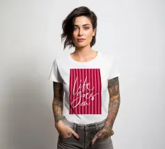 decorazioni con mentalità positiva, design tipografico audace, strisce rosa e rosse, arte dell'affermazione edificante