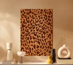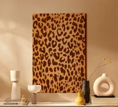Elegante stampa animalier classica con macchie di leopardo marrone scuro, su sfondo marrone cammello ombré.