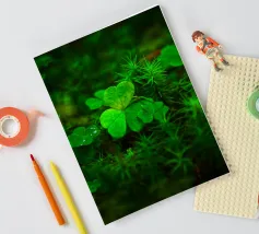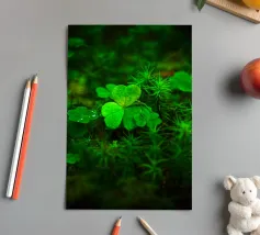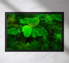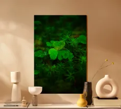 Trifoglio verde con muschio nella foresta. Un'idea regalo chic per chi ama la natura della foresta e trascorre molto tempo all'aria aperta.