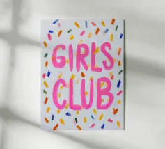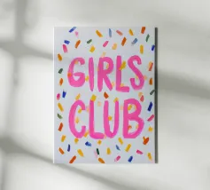 Il "Girls Club" vi invita a una serata colorata e piena di divertimento e amicizia. Con coriandoli e citazioni ispiratrici, le ragazze celebrano insieme la loro giovinezza. Questa vivace illustrazione dai colori vivaci incarna la gioia e la solidarietà!