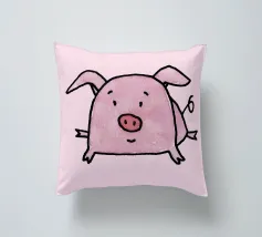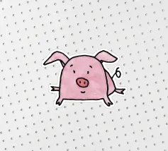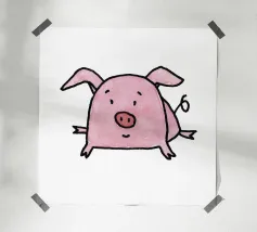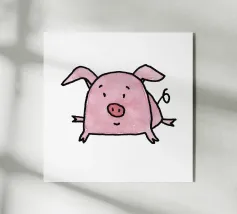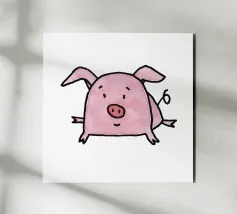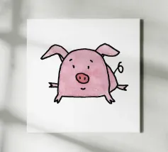 Illustrazione disegnata a mano di un maialino caduto - digitalizzata per la stampa su sfondo trasparente. In questo modo è facile cambiare il colore dello sfondo.