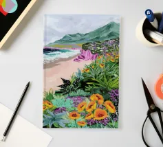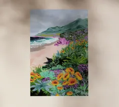 Sarah Gesek conferisce ai suoi paesaggi un'atmosfera da paese delle meraviglie ultraterreno con colori ricchi e porta mondi lontani nelle vostre case. L'artista di Seattle preferisce lavorare con colori acrilici su carta, ma anche con gouache, matite colorate, pastelli a cera e altro ancora. Ispirate dallo spettacolo naturale di rocce scoscese e giardini ondulati, notti stellate e cieli atmosferici, le opere di Sarah infondono un senso di vagabondaggio. Immergetevi, camminate e innamoratevi di nuovo del nostro mondo.
