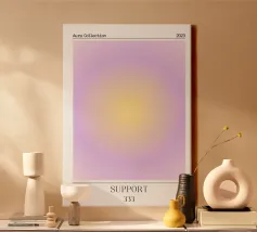 Questo suggestivo poster digitale della "Aura Collection 2023" presenta un gradiente accattivante. Un giallo caldo e brillante si irradia dal centro, sfumando dolcemente verso l'esterno in un rilassante viola lavanda, creando un'aura eterea e di sostegno. In basso, la scritta "SUPPORT" e "333" (che si riferisce al numero dell'angelo) rafforzano sottilmente un messaggio di guida e sostegno divino. Questo poster digitale di alta qualità viene fornito con un'impressionante risoluzione di 7000x5000 pixel e 300 dpi, garantendo dettagli nitidi e colori vivaci per qualsiasi dimensione di stampa. Elevate il vostro spazio con questo pezzo squisito e significativo, perfet