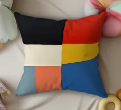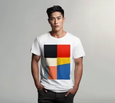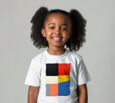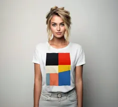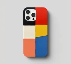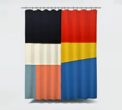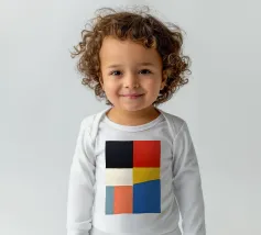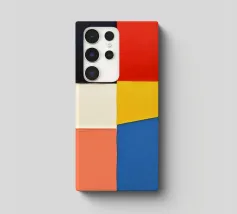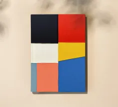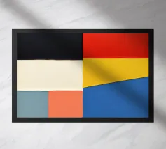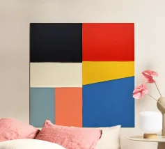 Questa opera d'arte presenta un insieme di audaci forme geometriche disposte a griglia.