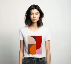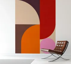 Una composizione geometrica audace e poetica, ispirata al design del Mid-Century Modern e del Bauhaus. Un mix di forme arrotondate e angolari nei colori rosso intenso, marrone caldo, arancione bruciato e rosa tenue, su uno sfondo abbronzato con una sottile trama di lino. Questa armoniosa miscela di forme e colori crea una dichiarazione di fiducia ed elevazione, perfetta per illuminare le vostre pareti con moderna eleganza. Parte di un duo per un impatto visivo ancora più forte.