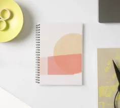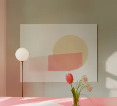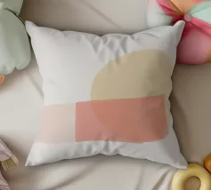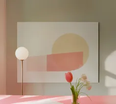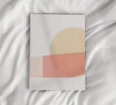 Forme geometriche morbide e pastello creano un design minimalista con forme sovrapposte dominate da un cerchio e da rettangoli. I colori tenui si fondono perfettamente, dando un'impressione di tranquillità e armonia.