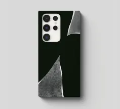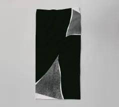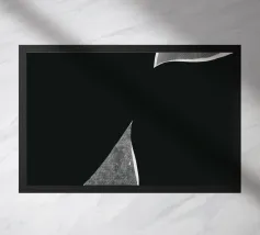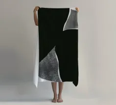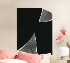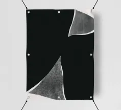 Forme astratte in bianco e nero contrastanti creano una composizione intrigante, con linee curve che formano forme geometriche dinamiche. L'uso di un forte contrasto evidenzia l'interazione tra le forme e lo spazio circostante.