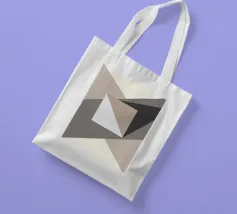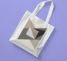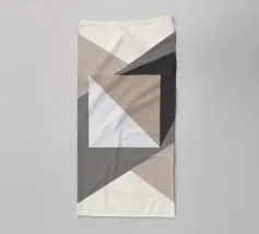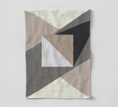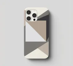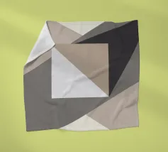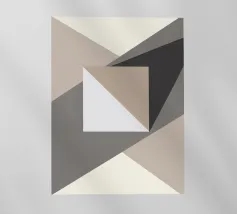 Forme geometriche in toni neutri creano una composizione astratta con triangoli sovrapposti e un quadrato centrale. Il gioco di luci e ombre aggiunge profondità al design minimalista.