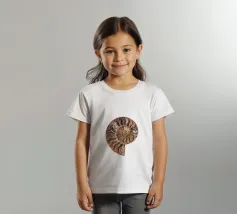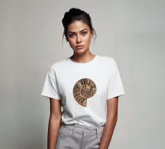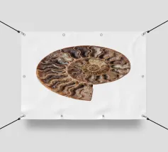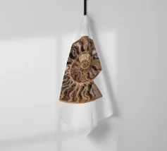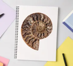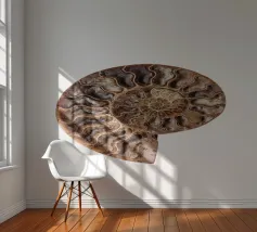 Conchiglia fossile pietrificata di amonite Questa fotografia cattura la conchiglia dell'ammonite in tutto il suo splendore, mettendone in risalto la splendida texture e gli intricati dettagli. L'ipnotico motivo a spirale racconta una storia di milioni di anni, trasportando gli spettatori in un'epoca in cui queste affascinanti creature vagavano per gli oceani. Le ricche tonalità della conchiglia fossile, che vanno dai marroni terrosi ai creme tenui e ai verdi tenui, creano un'atmosfera calda e invitante, rendendo questa immagine un punto focale perfetto in qualsiasi stanza.