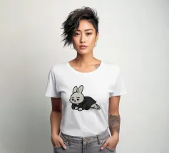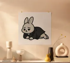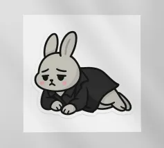 Questo adesivo espressivo di un coniglio seduto con uno sguardo triste e un vestito grigio risveglierà empatia e tenerezza in tutti i vostri oggetti. Un design unico, perfetto per simboleggiare l'introspezione o come regalo per un amico sensibile. Personalizzate il vostro computer, notebook o telefono con questo coniglio kawaii, delicato e autentico!