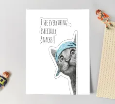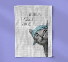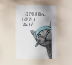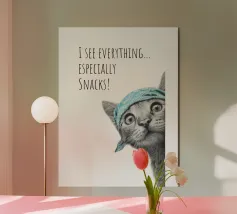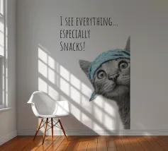 Questo gatto ha una vista assoluta e, soprattutto, ha gli occhi puntati sulle vostre prelibatezze! Con il suo sguardo curioso e la sua bandana cool, mette subito di buon umore tutti i passanti e li fa sorridere. Il design moderno e minimalista gioca con linee chiare, raffinati disegni in bianco e nero e un accento di colore mirato in un ricco turchese. È elegante, giovane e minimalista, perfetto per chi ama il design moderno ma non vuole rinunciare a umorismo e personalità. Un must per i fan dei gatti, gli amanti degli snack e tutti coloro che non si prendono troppo sul serio.