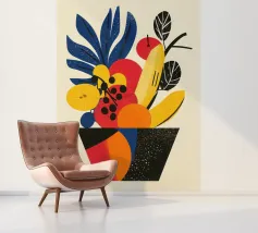 Un cesto di frutta stilizzato che combina colori intensi e forme dinamiche. Questo visual è un vero e proprio omaggio alla ricchezza della natura e ai piaceri dei sensi, ideale per un tocco caldo e artistico.