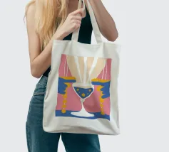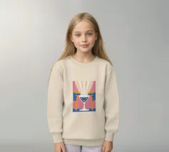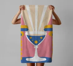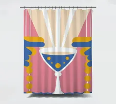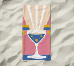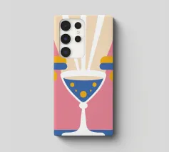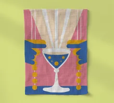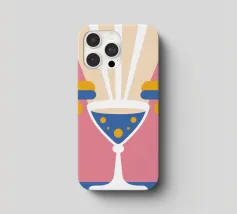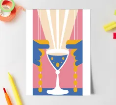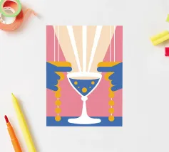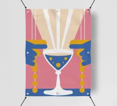Illustrazione stilizzata di un bicchiere da cocktail che viene presentato con cura, perfetto per mostrare l'arte della mixologia.