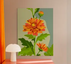 Questa illustrazione dettagliata e affascinante di un crisantemo è perfettamente catturata, con i suoi petali delicati e i suoi colori rilassanti.
