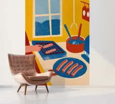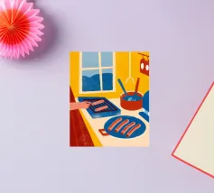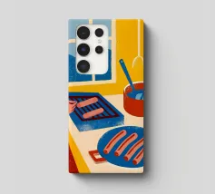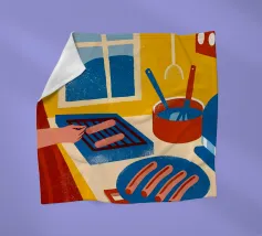 L'illustrazione "Cucinare le salsicce" mostra la cottura delle salsicce in uno stile attraente e appetitoso.