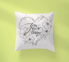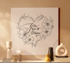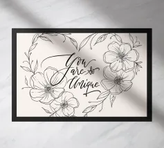 Siete così unici. Bella frase di apprezzamento piena di amore, affetto e calore. Calligrafia moderna in un cuore di fiori e foglie. Nero su bianco. Motivo floreale e di tendenza. Bella per San Valentino, romantici, innamorati, coppie di innamorati, matrimoni, fidanzamenti, affetto, tenerezza. Un bellissimo omaggio.