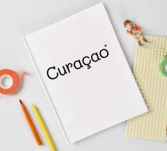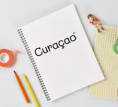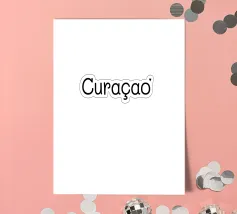 Adoro andare a Curaçao, un'isola tropicale dei Caraibi. Amo viaggiare in tutto il mondo. Adoro visitare città, montagne e deserti. Tipografia in nero e bianco (trasparente). È possibile cambiare il colore dello sfondo. Poster tipografico minimalista di un viaggiatore.