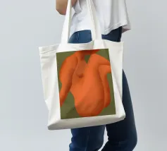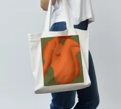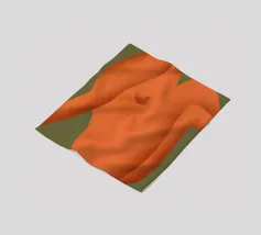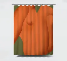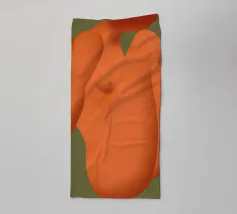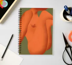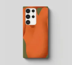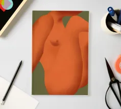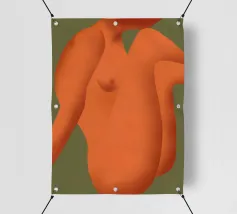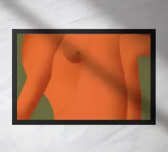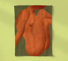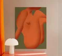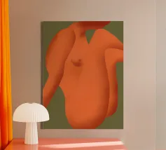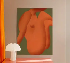 Una rappresentazione astratta di una forma umana è resa in calde tonalità arancioni su uno sfondo verde tenue. L'immagine enfatizza le curve e la semplicità, creando un senso di fluidità e modernità.