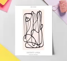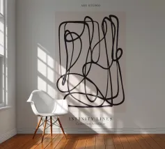 Questa opera d'arte unica della collezione "Infinity Lines" dona un tocco moderno e astratto a qualsiasi ambiente con le sue linee curve e dinamiche. Le linee nere e apparentemente infinite su uno sfondo minimalista creano un equilibrio armonioso tra caos ed eleganza. Perfetto per murales, cuscini o cover per cellulari, questo disegno piacerà a chiunque ami l'arte moderna e le forme astratte.