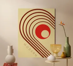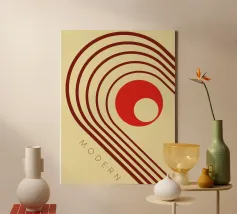 Un design retrò moderno e minimalista che colpisce per le sue linee chiare e le sue forme geometriche. I toni caldi del beige e del rosso, combinati con cerchi dinamici e linee curve, conferiscono a questo motivo un'estetica senza tempo. Perfetto per gli amanti dell'arte retro-moderna, per trasformare pareti, cuscini, tazze o cover per cellulari in un elegante richiamo visivo. Questo design conferisce eleganza contemporanea e vibrazioni vintage alla vostra casa o al vostro ufficio. Un punto di forza per l'arredamento moderno e per le idee creative di decorazione.