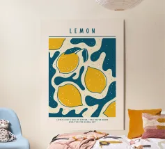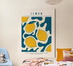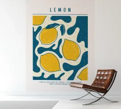 Questo colorato design retrò combina limoni e forme vivaci in blu e giallo per creare un'opera d'arte fresca e moderna. Ispirato alla leggerezza estiva e al fascino mediterraneo, porta freschezza e buonumore in ogni casa. Perfetto come murale, tazza o accessorio per la casa - ideale per gli amanti della grafica moderna, dei motivi di frutta e delle decorazioni estive.