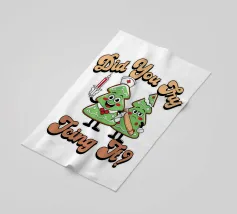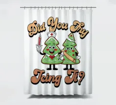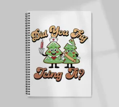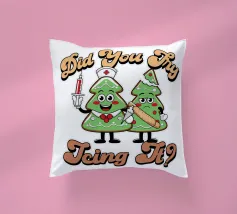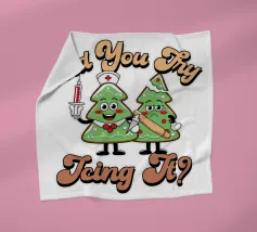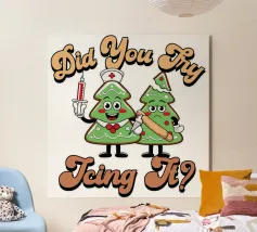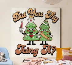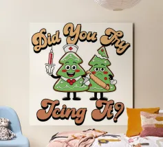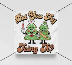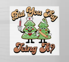 Due alberi di Natale a fumetti vestiti da professionisti del settore medico posano con un mattarello e una siringa. Sono accompagnati dalla frase scherzosa "Did You Try Icing It?".