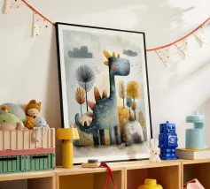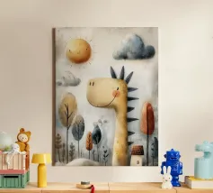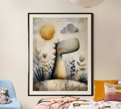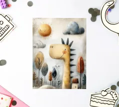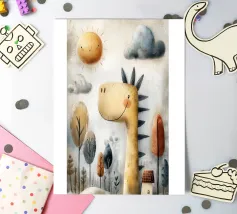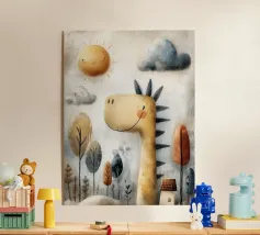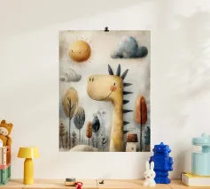 🦖 Un radioso amico dinosauro per la cameretta! Questo allegro motivo di dinosauro porta il sole, il calore e il senso di avventura nella stanza dei bambini. Perfetto come poster, tela o decorazione murale - progettato con amore per i piccoli fan dei dinosauri. I colori tenui e i dettagli giocosi lo rendono un regalo meraviglioso per una nascita, un battesimo o un compleanno, un elemento di spicco nella stanza o nella cameretta del bambino. 🌞💛
