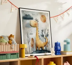 🦖 Un radioso amico dinosauro per la cameretta! Questo allegro motivo di dinosauro porta il sole, il calore e il senso di avventura nella stanza dei bambini. Perfetto come poster, tela o decorazione murale - progettato con amore per i piccoli fan dei dinosauri. I colori tenui e i dettagli giocosi lo rendono un regalo meraviglioso per una nascita, un battesimo o un compleanno, un elemento di spicco nella stanza o nella cameretta del bambino. 🌞💛