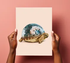 Portate un sorriso nel vostro spazio con la nostra stampa DISCO TURTLE. Questa opera d'arte unica presenta una tartaruga con un guscio di palla da discoteca, aggiungendo un tocco giocoso a qualsiasi stanza. Perfetta per gli amanti degli animali, per gli appassionati d'arte e per coloro che desiderano aggiungere un tocco giocoso all'arredamento della propria casa, questa stampa sarà sicuramente un argomento di conversazione e ravviverà qualsiasi ambiente. Ordinate oggi stesso la vostra stampa Turtle Disco Ball e date inizio al divertimento!