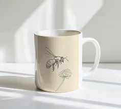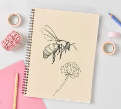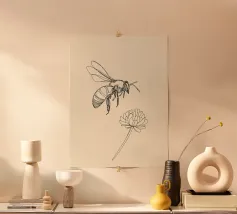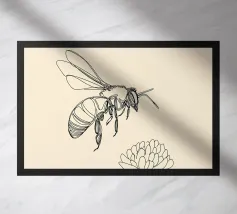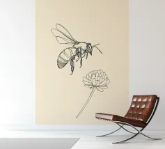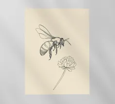 Line art minimalista di un'ape e di un fiore Perfetto per gli amanti della natura e per le decorazioni murali di ispirazione floreale