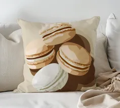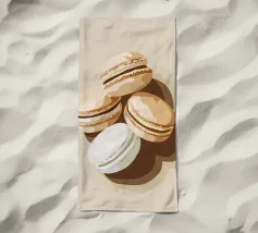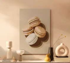 Questa elegante illustrazione di dolci macarons nei toni morbidi del beige e del marrone dona un tocco di pasticceria francese a qualsiasi cucina moderna. Ideale per gli amanti dei dolci e dell'arte minimalista.
