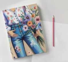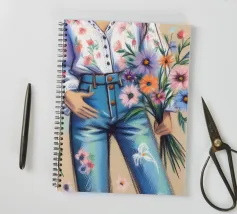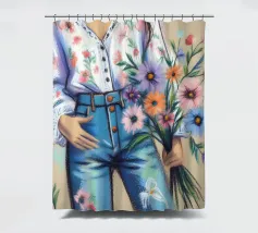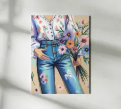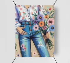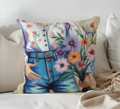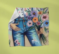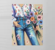 Ritratto di donna calma e rilassata con un mazzo di fiori.