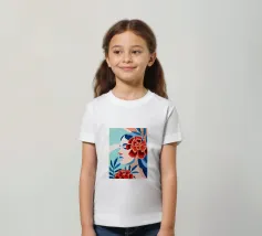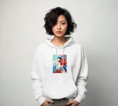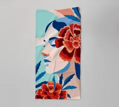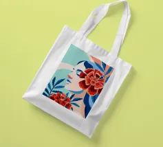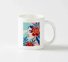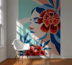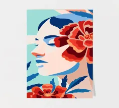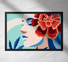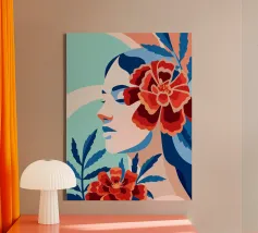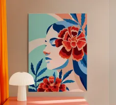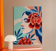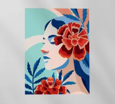 Questa opera d'arte raffigura una donna circondata da bellissimi fiori, che creano un'atmosfera pacifica e armoniosa.