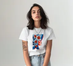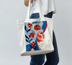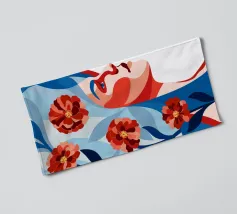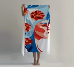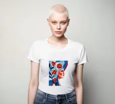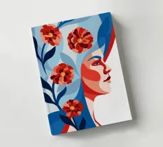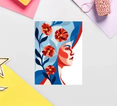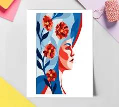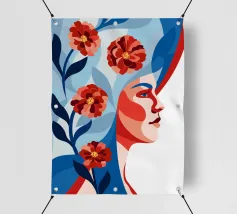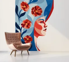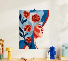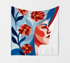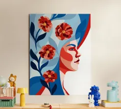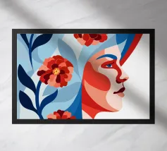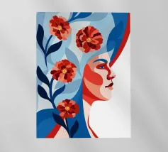Questa opera d'arte raffigura una donna circondata da bellissimi fiori, che creano un'atmosfera pacifica e armoniosa.