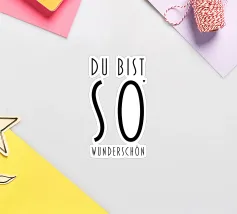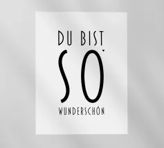 Du Bist So Wunderschön. Espressione d'amore e di San Valentino. Tipografia in nero e bianco (trasparente). È possibile cambiare il colore dello sfondo. Poster tipografico minimalista.