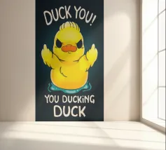 L'opera d'arte intitolata "I Don't a Duck" mostra un'atmosfera surreale e assurdamente umoristica che combina giochi di parole ed elementi visivi. Con uno stile di illustrazione minimalista e un approccio ironico al design, l'opera emana un senso di confusione. La stessa frase "Duck You" è al centro dell'attenzione e implica la negazione o la falsità dell'esistenza di un'anatra, il che aggiunge strati di significato e invita alla risata. Questo stile si inserisce nelle tendenze digitali dell'assurdismo, della cultura dei meme e del design sperimentale che si prendono gioco della logica quotidiana in forme visive uniche e fantasiose.