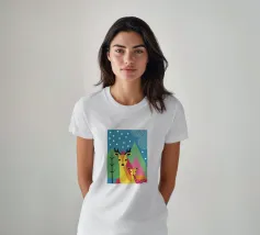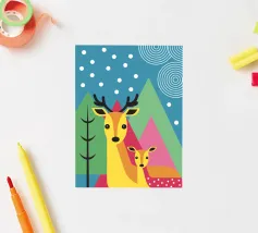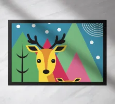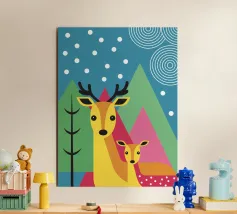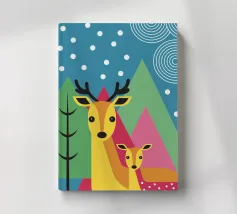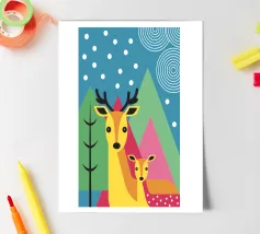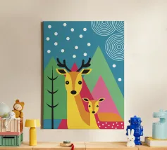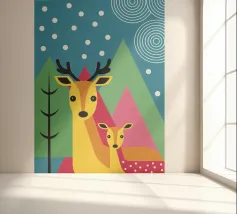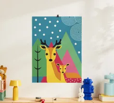 L'illustrazione "Modern Two Deer" presenta due graziosi cervi affiancati in un ambiente calmo e armonioso. L'opera d'arte combina affascinanti elementi naturali con un design moderno,
