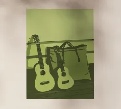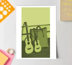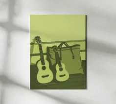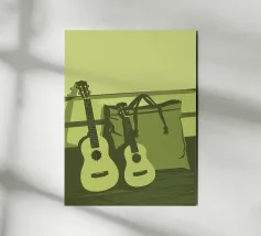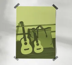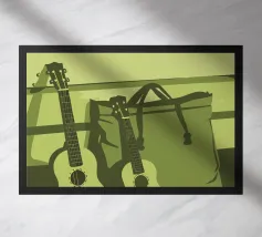 Uno stile artistico unico e accattivante. Due chitarre raffigurate in modo estremamente dettagliato,