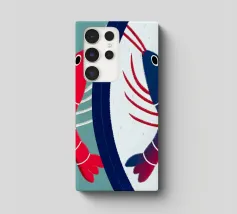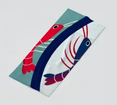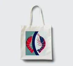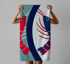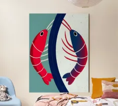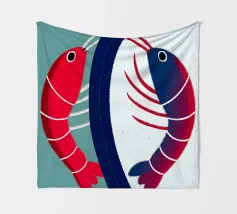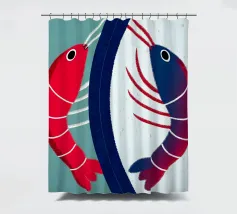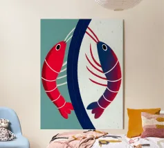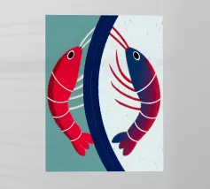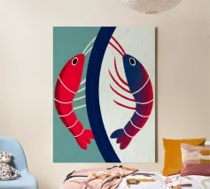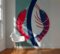Allegra illustrazione con due gamberi di colori diversi che interagiscono, irradiando lo spirito della colorata e interessante vita marina.