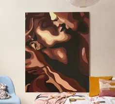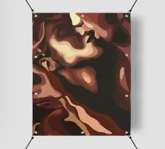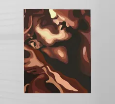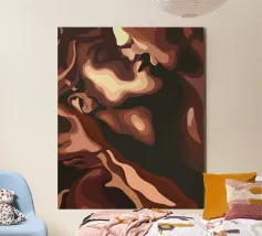 È un'opera d'arte di grande impatto! Lo stile è fortemente astratto, con colori ricchi, caldi e stratificati e forme fluide.