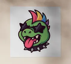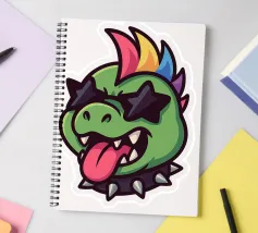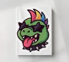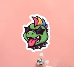 Aggiungete una dose di divertimento ed energia a tutte le vostre superfici con questo adesivo di dinosauro punk con cresta arcobaleno, occhiali stellati e sorriso devastante. Perfetto per i fan dello stile folle, catturerà sicuramente l'attenzione di tutti e aggiungerà un tocco di colore alla vita quotidiana.