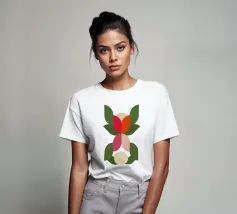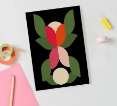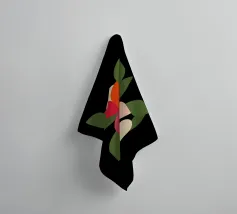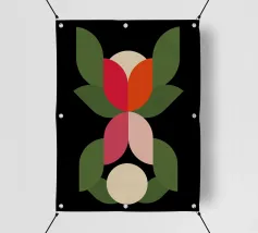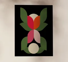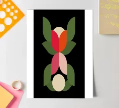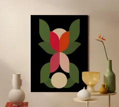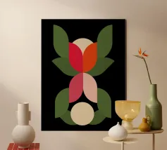 Opera d'arte astratta con un audace disegno floreale dalle vibranti tonalità rosse, verdi e beige. Questo pezzo unico fonde l'arte moderna con l'eleganza della natura, perfetto per aggiungere un tocco di estrosità e raffinatezza al vostro spazio e ai vostri accessori.