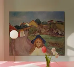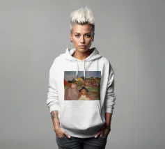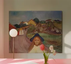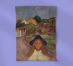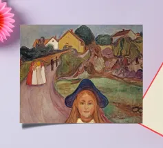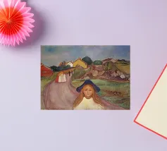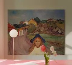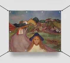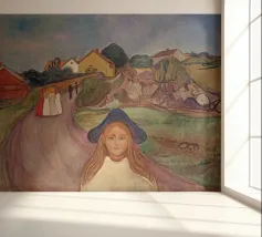 Immergetevi nei paesaggi emotivi di Edvard Munch con "La strada di Aasgaardstrand". Questo suggestivo dipinto espressionista cattura una scena di struggente bellezza, con una figura centrale che guarda fuori, il cui volto riflette un mondo interiore, sullo sfondo di una strada tortuosa che conduce alle case di Åsgårdstrand. L'uso caratteristico di Munch di linee fluide, colori tenui ma intensi e prospettive distorte trasmette un profondo senso di introspezione e malinconia, caratteristica del suo lavoro profondamente personale. Questa stampa d'arte digitale di alta qualità, prodotta meticolosamente a 7000x5000 pixel e 300 dpi, assicura che ogni nua