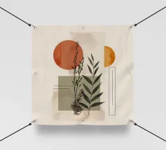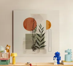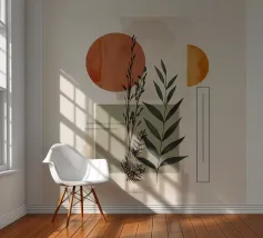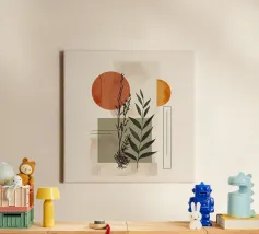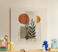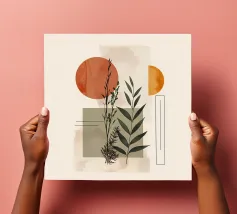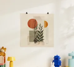 Scoprite l'armonia di elementi geometrici e composizioni botaniche in uno stile minimal. Questa elegante opera d'arte fonde linee pulite e forme naturali, perfette per un arredamento moderno.