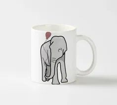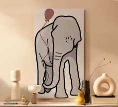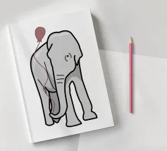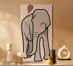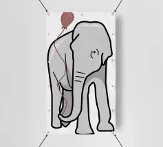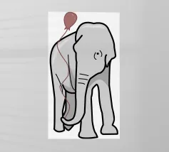 Illustrazione digitale di un elefante che tiene in mano un palloncino.